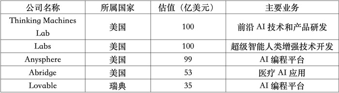 早期的AI投资主要聚焦于“AI+行业”的赋能逻辑,投资人关注的是如何用AI改造现有业务流程。但2024年后,投资逻辑发生了根本性转变。资本开始追逐那些只有AI才能创造的全新价值——如ThinkinMachinesLab(由前OpenAI首席技术官MiraMurati联合创立)在未推出任何产品的情况下以120亿美元估值完成20亿美元种子轮融资,这在传统创投逻辑中几乎不可想象(表1)。