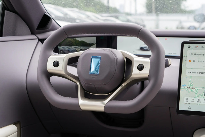 阿维塔 06方向盘是橄榄形状,造型比较独特,在刚刚上手时会有一些不习惯。但是大小刚好合适,握感很饱满,尤其是转弯时很轻松,一只手就能够操作。方向盘还可以支持加热功能,在冬天到来时那就拥有较好的效果。方向盘上面的多功能按键布局比较合理,左侧是辅助驾驶系统控制区,右侧则是巡航控制区,就算盲操也能够精准的按。让我比较想不到的是,方向盘还会集成驾驶位的头枕扬声器,导航语音只会在我耳朵边响起,不会影响到其他的乘客,私密性是比较好的。转向助力还有三档可以调节,平时我主要是使用标准模式,在高速时在打开之后切换到沉稳模式,方向盘的稳定性是比较高的。我老婆则比较喜欢轻盈模式。