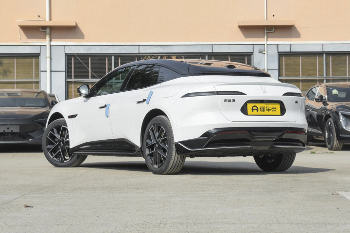 前机舱盖选装的后方交互屏可以支持八大场景交换。车身侧面有溜背的线条,营造出悬浮式车顶的既视感。隐藏式门把手和车身的线条就会自动的衔接,关门时还会自动的吸合,每一次上车和下车都会觉得比较高级。我还额外选装了电子外后视镜,两个6.7英寸的高清后视屏显示比较清晰。就算是下雨天,也并不需要担心后视镜积水模糊,同时还可以降低风阻。车尾的设计其实也会充满巧妙的构思,电动开合的后备箱设计在双手拿购物袋时就能够轻松的开启。小尺寸的鸭尾搭配高位刹车灯以及分段式的流光尾灯,在晚上点亮时就会拥有较高的辨识度。后包围底部的大面积熏黑式装饰件,还有扩散器的设计,不仅会强化运动风格,同样也会优化空气动力学。