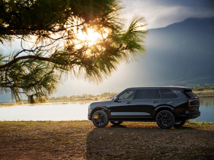 静置于湘湖逍遥庄园前,极氪9X的气场是直观且压迫性的。宽超1.2米的史上最大一体式格栅,配合昂扬的蚌式前舱盖,构筑了极具辨识度与威严感的前脸,仿佛一位沉稳的东方绅士,力量感内敛却不容忽视。流畅的“飞桥游艇式”车顶线条从车头优雅延伸至车尾,加之新能源SUV中最大的后车门设计,不仅带来了MPV级的优雅上下车体验,更赋予了其“陆上游艇”般的独特姿态。当环幕星钻贯穿尾灯在初冬的薄暮中点亮,42242个钻石切割型面折射出如银河般流动的光韵,极氪9X已然将每次出场都化为一场视觉盛宴。