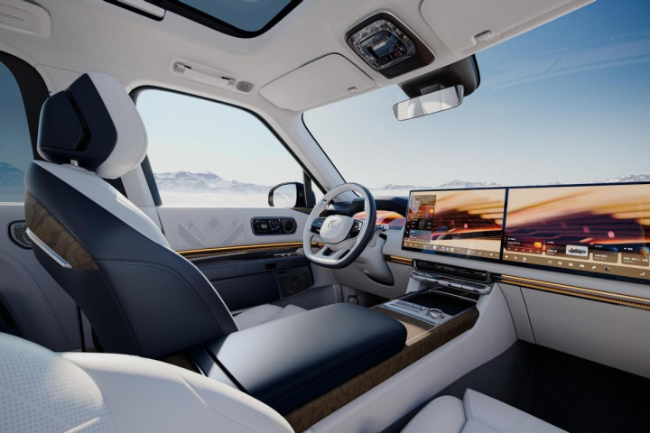 豪华的触感则源自每一处细节。全车超过5.5平方米的Soft NAPPA全粒面头层真皮包覆,选用北美顶级脊背公牛皮,经过超常规2倍的软化时长处理,触感细腻温润,堪称皮肤级的享受。而耗时6.5小时手工绷制的4.2平方米麂皮绒顶棚,则复刻了人类触摸云朵的本能渴望,将座舱的奢华氛围推向顶点。
