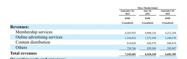 分业务来看,会员服务营收为42.1亿元,同比下滑4%,主要原因是与去年同期相比内容较少,但环比增长3%。